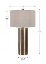Finished in An Antiqued Brushed Brass, This Table Lamp Keeps It Simple Yet Upscale with A Large Metal Cylinder Base with Matching Accents. The Hardback Drum Shade is Finished in A Beige Linen Fabric.