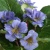 A Trio Of Charming Primulas Featuring Broadleaf Foliage With Delicate Blooms In Periwinkle, White And Fuchsia, Potted In Dimpled, White Glazed Ceramic Containers.