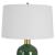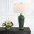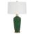 The Verdell Table Lamp Features A Ceramic Base Finished in A Mottle Dark Mossy Green Glaze Accented with Lightly Antiqued Brass Plated Details. The Slightly Tapered Round Shade is Covered in A White Linen Fabric. Due to The Nature of Fired Glazes on Ceramic Lamps, Finishes Will Vary Slightly.