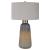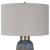 A Beautiful Display of Color and Style, This Ceramic Table Lamp Features An Embossed Design with A Unique Mix of Matte and Gloss Glazes in Various Shades of Blue-green, Indigo, and Golden Rust, Paired with Antique Brass Plated Details. The Hardback Drum Shade is Covered in A Light Gray Linen Fabric with Natural Slubbing.