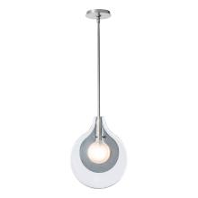 The use of Soiva glass from Venice was central to this design by HF's Jason Hancock. Two layers of handmade clear, textured glass encases a sculptural steel piece surrounding its bulb illumination. The frosted glass around the bulb gives a dimensionality to this single-light pendant. Part of the ART + ALCHEMY by Hubbardton Forge Collection.
