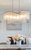 Cascading Waterfall glass shades are suspended from a frame finished in our popular Golden Silver. This elegant collection spans design genres from contemporary to traditional which gives it universal appeal.