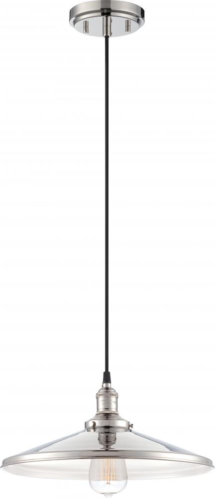 Nuvo's Vintage 1 light pendant is a dignified lighting solution for inside the home. Illuminate dining rooms, living rooms, hallways, and foyers, with this polished nickel pendant and matching shade. Contemporary and elegant, the Vintage pendant adds s
