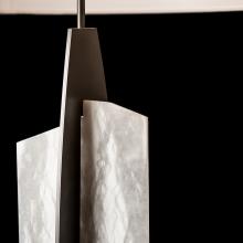 Natural alabaster stone is the focal point of the striking Volterra Table Lamp designed by Paul Marr Hilliard. The lustrous quality of the translucent white stone brings an elegance to the room. This tactile element intersects the strong steel body of this stunning shaded lamp.