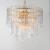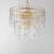 right arrow Long Description: Gracefully flowing molten glass panels with uniquely organic aesthetic encircle rings of rich Darkened Bronze metal or hand-applied Gold Leaf. This refined interpretation of tiered glass pendants exudes warmth and elegance, effortlessly blending a moody am