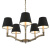 Bring timeless elegance into your home with the Wry Lighting Waverly 5-light Chandelier. Featuring Fabric shades and an Aged Brass frame, it creates a welcoming ambiance. The black silken fabric shades provide a classic and tailored contrast, with a crisp white interior lining that maximizes light output. The Aged Brass finish adds a warm glow and depth, making it ideal for traditional, transitional, or industrial-inspired spaces. This chandelier offers sloped-ceiling compatibility and adjustable height (Min: 19.5" - Max: 90.5") for versatility in any room. Perfect for dining rooms, foyers, and living areas, it's dry location rated, ensuring long-lasting quality. Requires 5 E12 Candelabra base bulbs (not included) with a maximum wattage of 60. Dimensions: 25"W x 17.5"H x 25"D. Elevate your decor with an exquisite lighting solution that highlights sophistication.