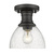 Bring traditional elegance into your home with the Yep by Golden Lighting Hines 1-light Semi-Flush Mount. Featuring a seeded glass shade and a matte black frame, it creates a nostalgic atmosphere. The seeded glass shade features clear, transparent glass with a glossy finish, infused with tiny air bubbles that add texture and sparkle. This artisan-crafted glass gently diffuses the light, creating a warm and inviting glow that enriches your decor. The matte black finish offers a timeless, modern appeal, effectively blending into various design styles from industrial to contemporary. Ideal for entryways, bedrooms, kitchens, and living areas with mid-height ceilings, this fixture is damp location rated, making it suitable for semi-enclosed spaces that may experience occasional moisture. Overall Dimensions: 6.88"W x 7.75"H x 6.88"D. Requires 1 E26 Medium base bulb (not included), max 60 wattage. Enhance your living space with this versatile and beautiful lighting fixture, perfect for adding a touch of vintage charm.