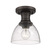 Bring vintage-inspired elegance into your home with the Yep by Golden Lighting Hines 1-light Semi-Flush Mount in Rubbed Bronze and Seeded Glass. Featuring a glass shade and a rubbed bronze frame, it creates a welcoming atmosphere. The seeded glass shade adds a touch of antique charm, with small air bubbles that catch the light beautifully and diffuse the bulb's glow for a warm ambiance. This timeless rubbed bronze finish offers a rich, deep base with soft satin lustre, making it perfect for any design style—from traditional farmhouse to industrial. Versatile for spaces like entryways and kitchens, it is damp location rated, ideal for covered and semi-enclosed areas like bathrooms or porches. Overall dimensions are 6.88"W x 7.75"H x 6.88"D, and it requires 1 E26 Medium base bulb (not included) with a maximum wattage of 60. Enhance your space with quality craftsmanship and vintage character.
