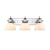 Bring traditional elegance into your home with the Yep by Golden Lighting Hines 3-light Vanity in Chrome and Opal Glass. Featuring an opal glass shade and a polished chrome frame, it creates a welcoming atmosphere. The opal glass shade provides a beautiful, luminous glow, designed to diffuse light evenly for a soft, glare-free experience. Timeless and elegant, its milky white color enhances the overall charm. Our polished chrome finish is both sleek and sophisticated, offering a mirror-like surface that complements various decor styles from ultra-modern to classic traditional. Suitable for damp locations, this fixture is perfect for bathrooms, covered porches, and laundry rooms. The adjustable directional heads allow you to customize the lighting to highlight specific areas or objects. Overall dimensions are 25.13"W x 8.75"H x 8.25"D, and it requires 3 E26 Medium base bulbs (not included), with a maximum wattage of 60 per bulb. Enhance your bathroom's sophistication with this stunning fixture, crafted from quality materials for lasting beauty.