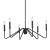 Bring modern elegance into your home with the Yep by Golden Lighting Kennedy 6-light Chandelier. With its Natural Black finish, this chandelier creates a welcoming atmosphere in various settings. This fixture has no shade, allowing the raw beauty of its design to shine through, ideal for showcasing the structure. The finish has a gentle, dark charcoal look with a matte surface that adds a grounded, organic feel to your space. The Natural Black finish complements a range of styles, from modern farmhouse to industrial and transitional, making it a perfect choice for any decor. This chandelier is dry location rated, ensuring it is suitable for indoor spaces like dining rooms, living rooms, and hallways. It also features sloped-ceiling compatibility and an adjustable height ranging from 9.375" to 49.875", providing flexibility for various installations. Dimensions are 29.75"W x 9.38"H x 29.75"D, and it requires six E12 Candelabra base bulbs, with a maximum wattage of 60 per bulb. This grand-scale statement piece is ideal for filling larger spaces with an inviting glow, making it a standout addition to your home.