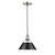 Bring industrial elegance into your home with the Yep by Golden Lighting Orwell 1-light 10in Pendant. Featuring a Metal shade and an Aged Brass frame, it creates a welcoming atmosphere. The metal shade showcases a classic Matte Black finish that absorbs light, offering a soft and sophisticated look. Its sleek, non-reflective surface adds a strong graphic quality to your decor. Embrace timeless elegance with the Aged Brass finish that provides a warm, inviting glow, reminiscent of vintage heirlooms created through a durable electroplating process. This pendant light is perfect for focused yet decorative illumination, ideal for kitchens, dining rooms, and even bathrooms. It is damp location rated, making it suitable for covered spaces, and is sloped-ceiling compatible with an adjustable height of 16" to 130". Overall Dimensions: 10"W x 8.5"H x 10"D. Requires 1 E26 Medium base bulbs (not included), with a maximum wattage of 100. Elevate your space with the unique blend of functionality and German-inspired design, ensuring quality and style in every room.