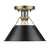 Bring industrial elegance into your home with the Yep by Golden Lighting Orwell 1-light Flush Mount. Featuring a metal shade and an aged brass frame, it creates a welcoming atmosphere. The metal shade in a Matte Black finish features a deep, uniform black color, providing a clean and modern lighting effect. The non-reflective matte surface absorbs light, creating a sophisticated look that suits various decors. Embrace timeless elegance with the Aged Brass finish, crafted through a durable electroplating process. It exudes a warm glow, reminiscent of vintage heirlooms, adding character to traditional, transitional, or industrial-inspired spaces. Ideal for low ceilings in hallways, closets, laundry areas, bathrooms, and more — compact design meets wide illumination. Damp Location Rated: Suitable for covered and semi-enclosed spaces with occasional moisture, like bathrooms, covered porches, and laundry rooms. Overall Dimensions: 10"W x 8"H x 10"D. Requires 1 E26 Medium base bulb (not included), max wattage 100. Elevate your interior with a stylish fixture that reflects quality and design sophistication.