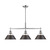 Bring industrial elegance into your home with the Yep by Golden Lighting Orwell 3-light Island Light. Featuring a metal shade and a pewter frame, it creates a welcoming atmosphere. The metal shade offers a Rubbed Bronze finish, distinguished by a rich, dark brown color with warm coppery highlights, allowing light to beautifully diffuse. Our pewter finish delivers timeless appeal with its soft and classic medium-grey hue, making it a versatile choice for both contemporary and traditional interiors. Tailored for kitchens and dining spaces, this fixture is dry location rated, ideal for indoor use, and compatible with sloped ceilings. The adjustable height ranges from 17.125" to 59.125" to suit your space perfectly. Overall dimensions are 35.75"W x 14.5"H x 10"D. Requires three E26 Medium base bulbs (not included), max wattage of 100 per bulb. Close with style and quality, this fixture elevates your decor while providing essential illumination.