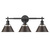 Bring industrial elegance into your home with the Yep by Golden Lighting Orwell 3-light Vanity in Matte Black and Rubbed Bronze. Featuring a rubbed bronze shade and a matte black frame, it creates a welcoming atmosphere. The rubbed bronze metal shade enhances light diffusion, providing a warm, inviting glow that complements traditional and contemporary settings. Its classic style ensures versatility in various decor. Ideal for covered and semi-enclosed spaces, this fixture is excellent for bathrooms, covered porches, and laundry rooms. Requires three E26 Medium base bulbs, with a maximum wattage of 100 per bulb, and measures 27.25"W x 9.88"H x 8.5"D, making it a practical and stylish choice for your vanity needs. Elevate your space with high-quality craftsmanship and timeless design.